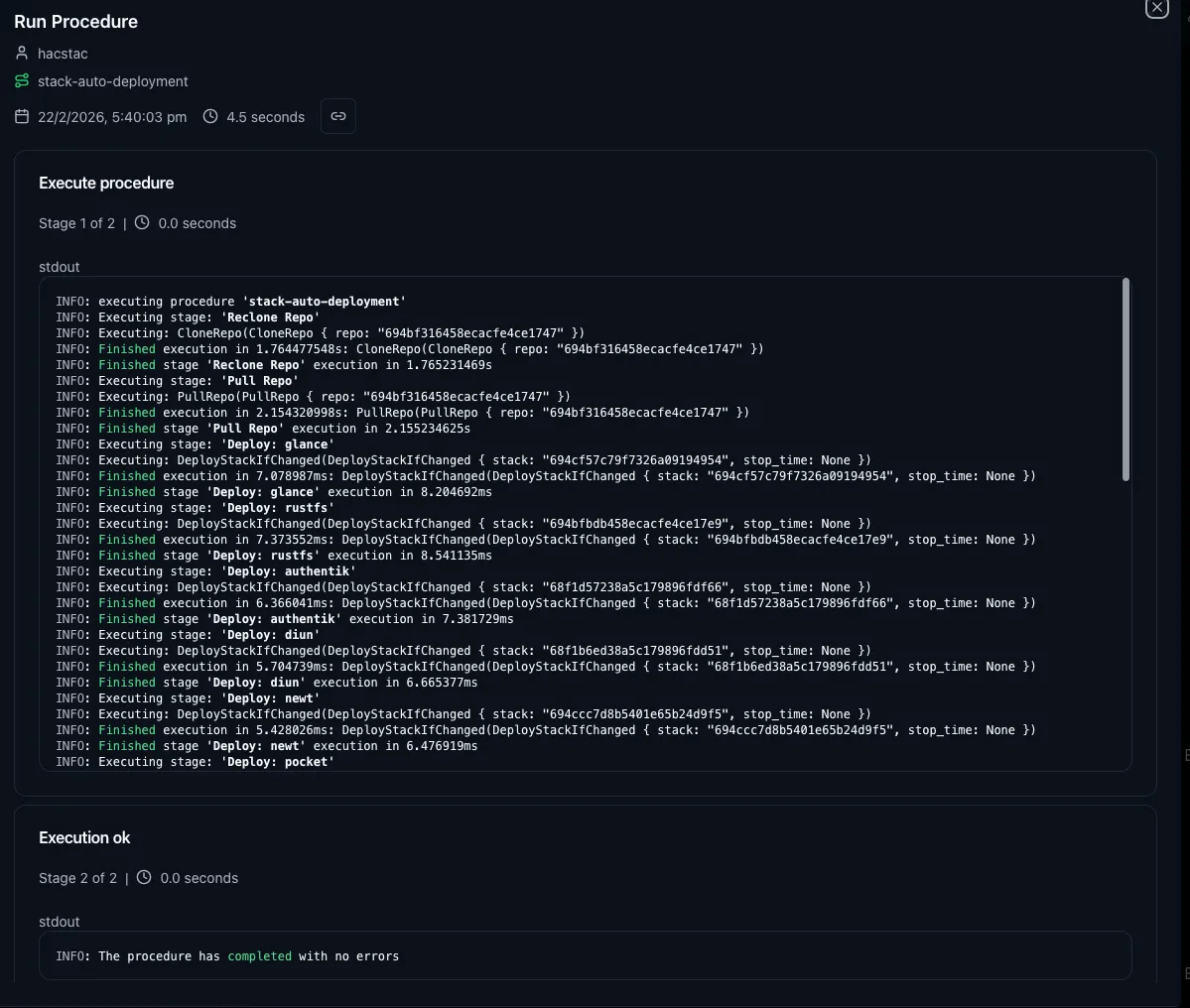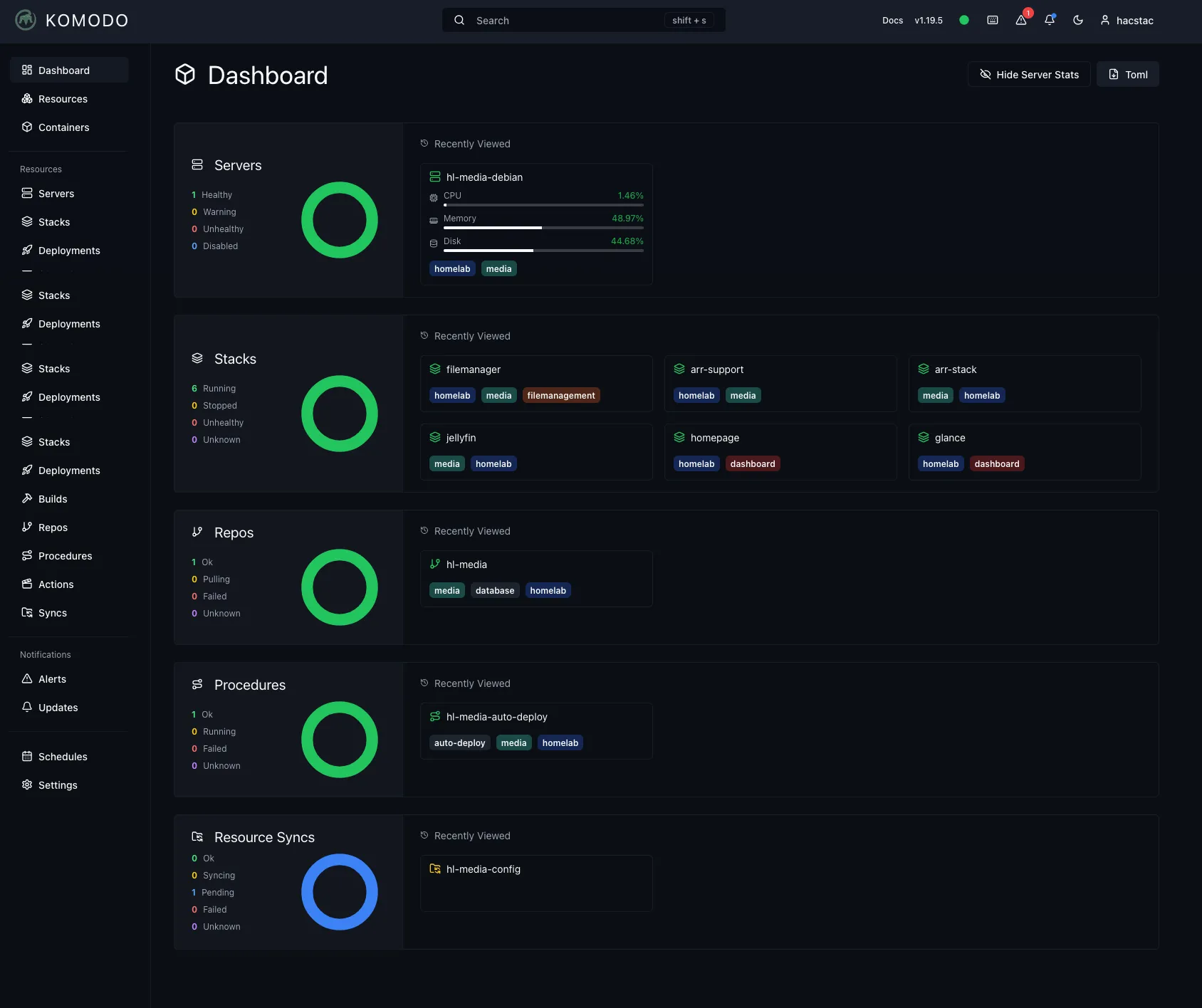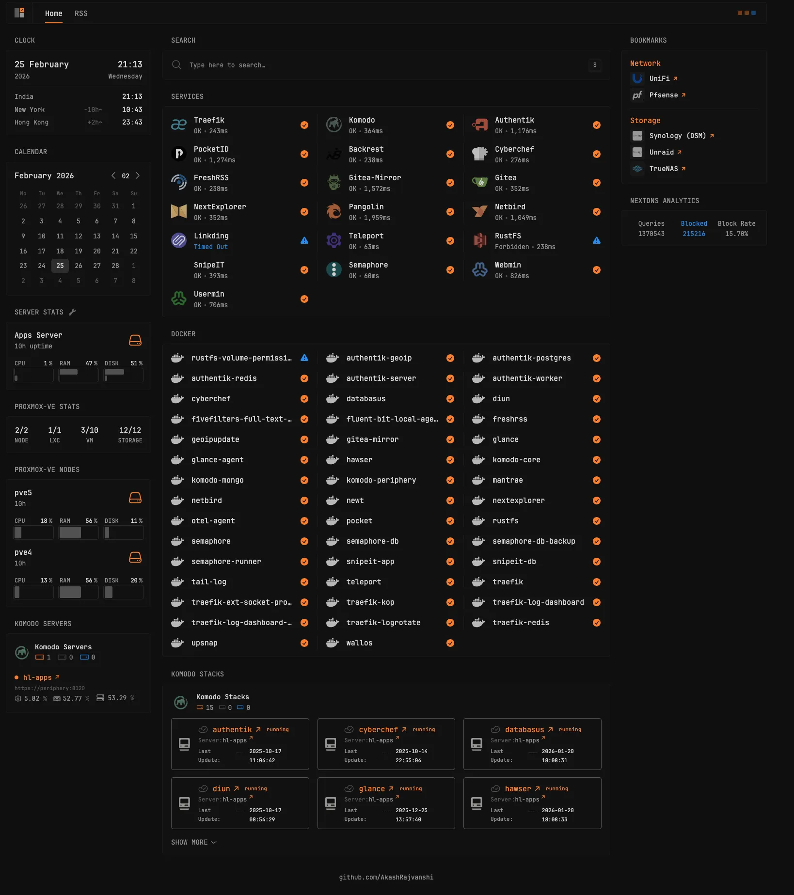 | Infrastructure | traefik, komodo, gitea mirror, rustdesk, traefik log dashboard |