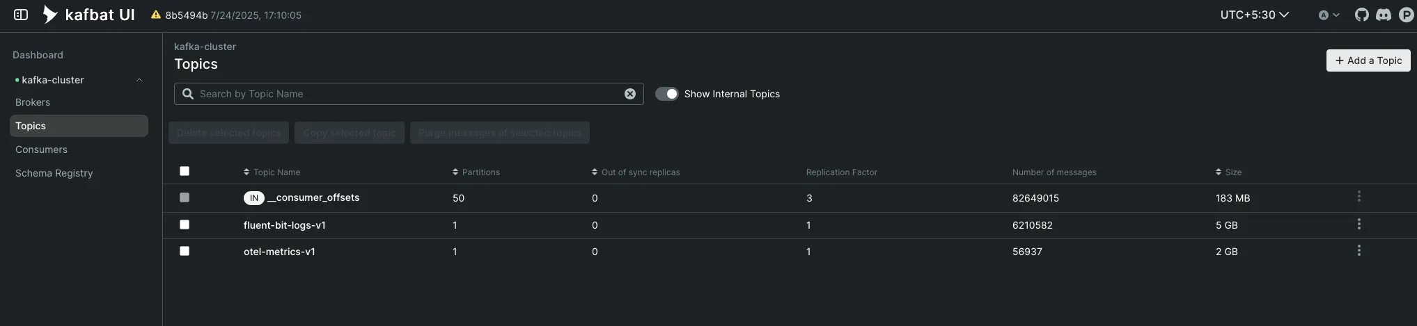 | Consumers | otel kafka consumer, fluentbit kafka consumer |