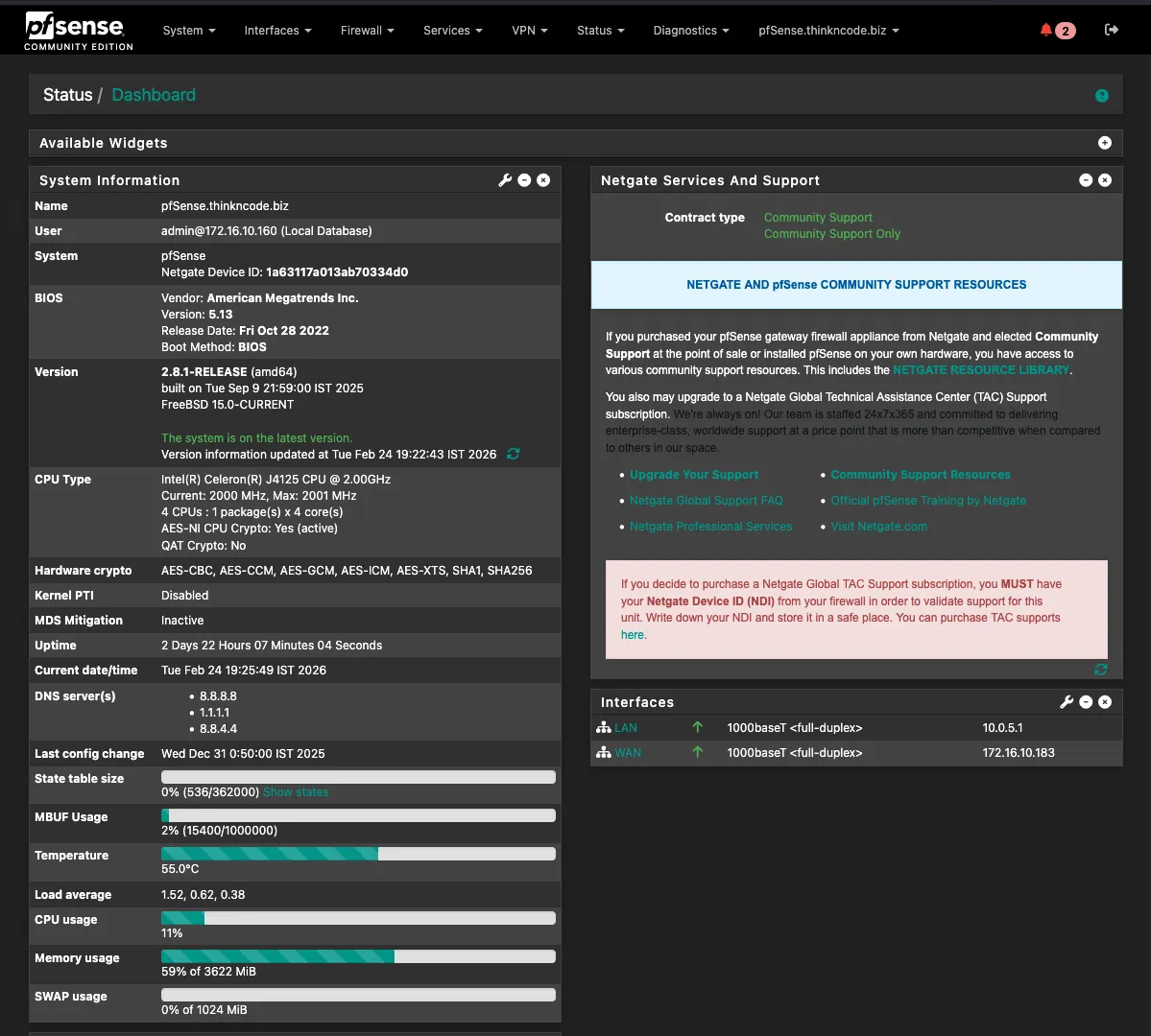 | Firewall | pfSense on G1 Thin Client (Intel J4125, 4x LAN) |