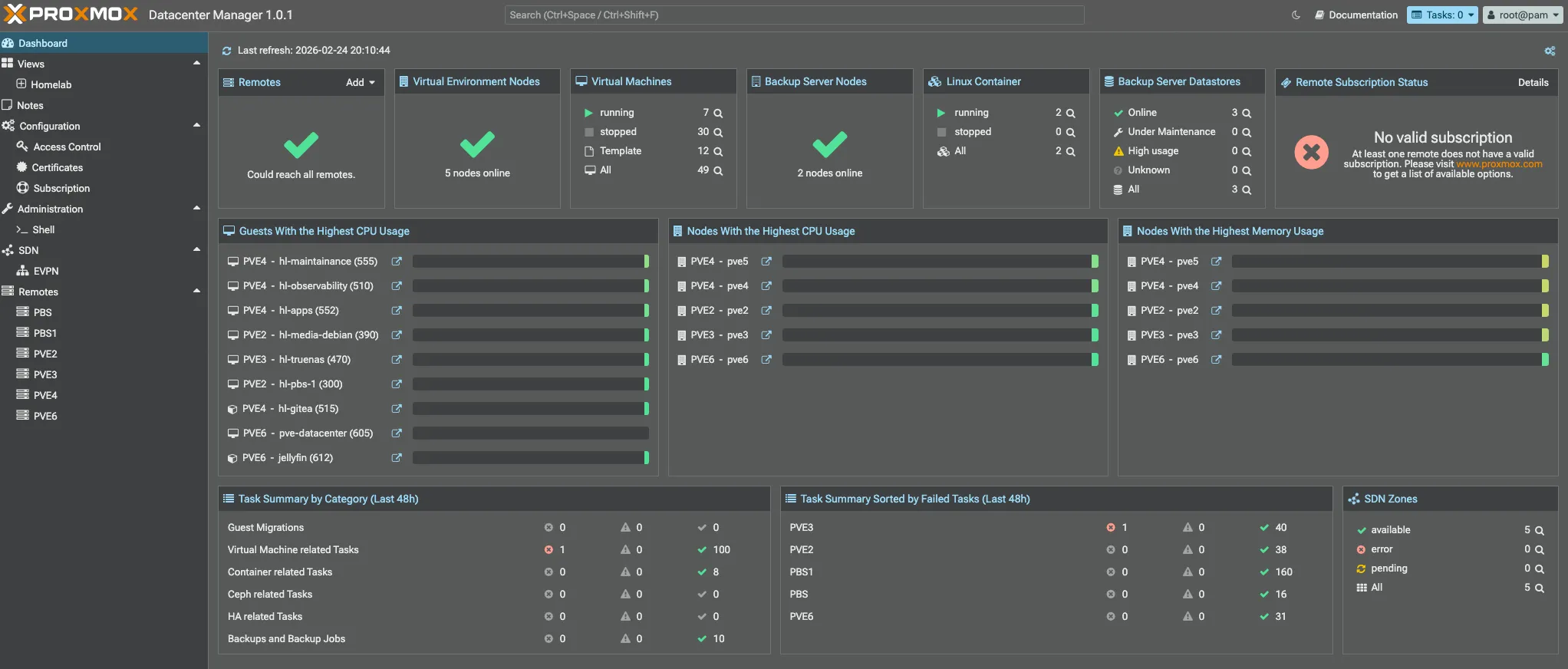 | pve6 | Media & transcoding | Jellyfin LXC, Talos K8s cluster, PVE Datacenter, NixOS/POC machines |